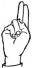 На ћирилици написано НИКОДИЈЕ ВУКОЈИЧИЋ састоји се из 17 слова [?]. Исписано ћириличном једноручном азбуком за глувонеме: